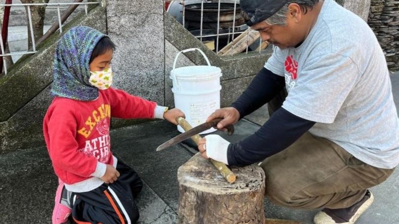 那天早上整理出發要用的工具、食物,還有拜訪時分享給長輩們的 acebe/禮物,去 Muakai 與 Sulriape 家,興奮的喊他們起床與準備,大家才一起正式出發,前往 kaingu